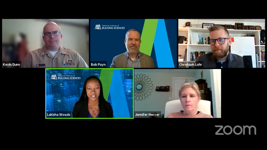 Panelists included Lieutenant Commander Kevin Dunn, MS, Certified Industrial Hygienist with the Centers for Disease Control and Prevention/National Institute for Occupational Safety and Health (NIOSH); Christoph Lohr, PE, CPD, LEED AP BD+C, Vice President of Strategic Initiatives with the International Association of Plumbing and Mechanical Officials (IAPMO); Jennifer Mercer, National Co-op Sales and Marketing Manager with Facility Solutions Group; and Greg Walker, Senior Director of Research of Continental Automated Buildings Association (CABA). NIBS Senior Director of Information Technology Bob Payn served as moderator.